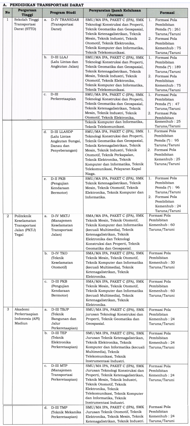 A. PENDIDIKAN TRANSPORTASI DARAT
